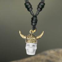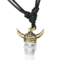 Description: Necklace with brass hand carved bone skull pendant