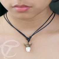 The casual impression captured from this hand carved bone skull necklace pendant is one that you do not want to miss on. Light around your neck but though to be worn in long period of time, this ethnic brass necklace pendant is one that is very simple but you could easily match it with any outfit from your closet. With its golden helmet and bone skull head this ethnic body jewelry will give you a sensation you have never felt before.