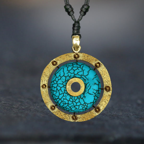 Description: Necklace with Brass and Turquoise Pendant