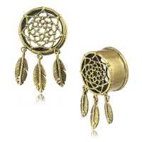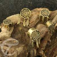 Description: Brass dream catcher ear plug.