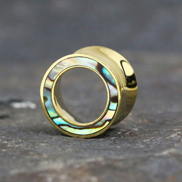 Description: Brass Ear tunnel with Abalone