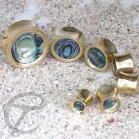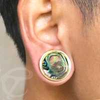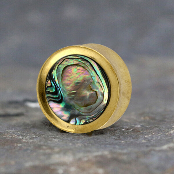 Description: Brass earplug with Abalone