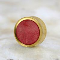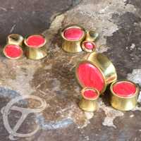 Description: Brass earplug with Stabilised Coral