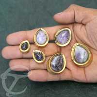 Description: Brass Tear drop plug with Amethyst