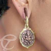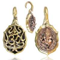 Description: Brass ear weight with copper Ganesh inlay.