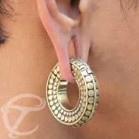 We have something new in our collection of brass ear weight. This tribal jewelry is new because our creative artisan changed it from a normal brass ear weight to a hinged brass ear weight. It would be easier to put on and it will satisfy your trendsetting customer. With its simple design and gold colour, it make it easier to match with any outfit in your closet.