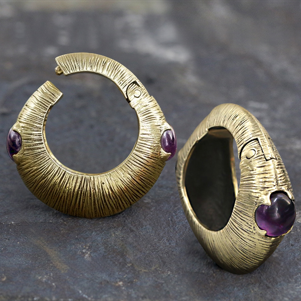 Description: Brass Ear Weight with Amethyst