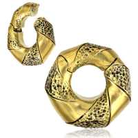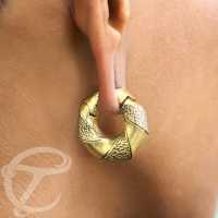 This brass piercing ear-weight is made with a seamless clicker system. Combining a nice clean look with a rough texture makes this tribal brass body jewelry very unique.