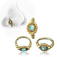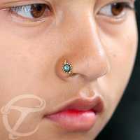 Description: Brass and turquoise nose ring.