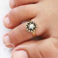 Description: Brass toe ring with white opal .