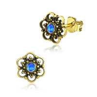 Here is another nice brass jewellery and simple tribal brass earring designed by our creative artisans. This ethnic body jewellery is in the shape of a flower, gold in colour and has a blue opal stone in the centre of it just to give it a better look. Give this brass body jewellery a try and we are sure you will love it!