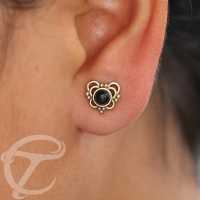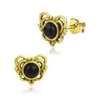 Brass Collection MBST 043 O - Brass and onyx ear studs. is sold
