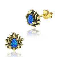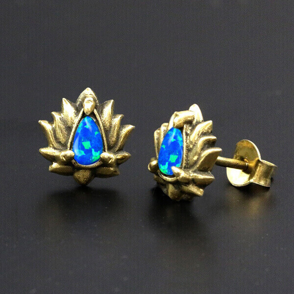 Description: Brass ear studs with blue opal.