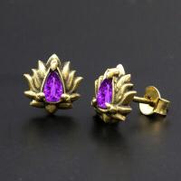 Description: Brass ear studs with purple crystal .