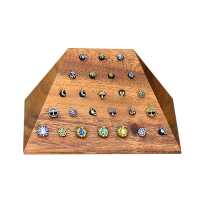 Slope shaped body piercing jewelry display made from Suar wood with 25 spaces for labret piercing jewelry. Comes with a custom made silicone tubing to keep the labrets firmly set in the wooden jewelry display.