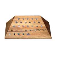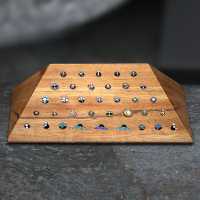 Slope shaped body piercing jewelry display made from Suar wood with 31 holes suitable for Labret piercing jewelry. Comes with a custom made silicone tubing to keep the labrets firmly set in the wooden jewelry display.