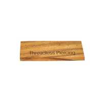 Rectangular shaped body piercing jewelry display made from Suar wood. Seven holes suitable for Threadless piercing ends. Threadless Piercing engraved on the bottom part.