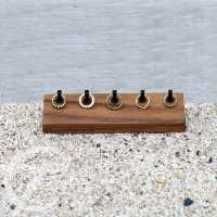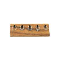 Rectangular body piercing jewelry display made from Suar wood. Five clips suitable for circular piercing bars or segment rings.