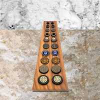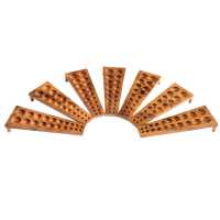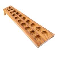 Slope shaped body piercing jewelry display made from Suar wood in natural colour. Suitable for 1 pair of ear plugs or tunnels in size 6, 8, 10, 12, 14, 16, 18, 20, 22 and 25mm. Comes with two pegs on the back so that the plug display can be slightly elevated in either direction.