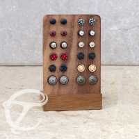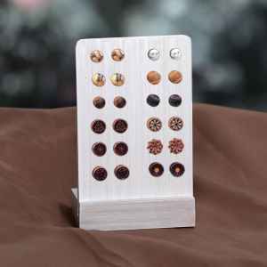 Wooden jewelry display suitable for 12pairs of Fake plugs with 1,2mm bars. Knock-down system display tray made from Suar wood.