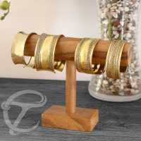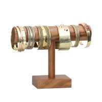 Wooden jewelry stand for displaying bangles and bracelets, made from Suar wood. Knock-down system for convenient shipping, easy to assemble.