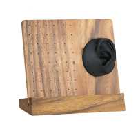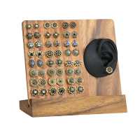 Wooden jewelry display suitable for 24pairs of ear studs. Comes with a black silicone ear used to showcase the jewelry. Knock-down system display tray made from Suar wood.