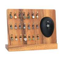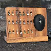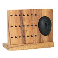 Wooden jewelry display with 21 clips to hang Navel Bars. Comes with a silicone belly button to showcase the navel piercing jewelry. Knock-down system jewelry display tray made from Suar wood.