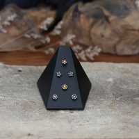 This slope shaped body piercing jewelry display is made from coffee coloured Suar wood and suitable for 5 labret piercings. Comes with custom made silicone tubes to keep the labrets firmly set in the wooden jewelry display.