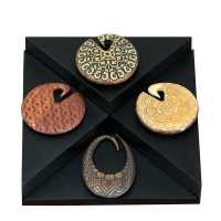 Square shaped platform jewelry display made from coffee coloured Suar wood. Suitable for all types jewelry as well as body piercing and organic jewelry.