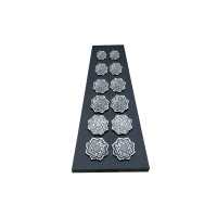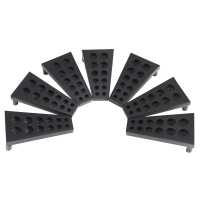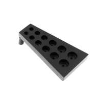 Slope shaped body piercing jewelry display made from Suar wood in coffee colour. Suitable for 1 pair of ear plugs or tunnels in size 6, 8, 10, 12, 14 and 16mm. Comes with two pegs on the back so that the plug display can be slightly elevated in either direction.