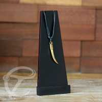 Rectangular shaped necklace display made from coffee coloured Suar wood. Wooden necklace display suitable to hold one necklace. Knock-down system for convenient shipping, easy to assemble.