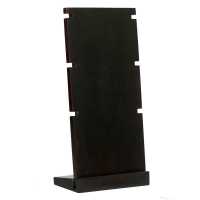 Rectangular shaped necklace display made from coffee coloured Suar wood. Wooden necklace display suitable to hold three necklaces. Knock-down system for convenient shipping, easy to assemble.