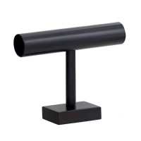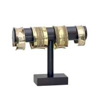 Wooden jewelry stand for displaying bangles and bracelets, made from coffee coloured Suar wood. Knock-down system for convenient shipping, easy to assemble.