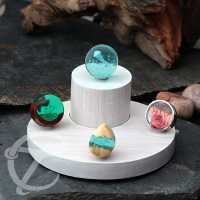 Round jewelry display made from white-washed Suar wood. Suitable for all types jewelry as well as body piercing and organic jewelry.