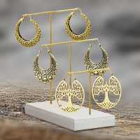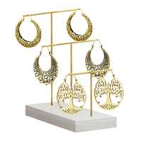 Jewelry display stand made from brass and white-washed suar wood. Suitable for all different types of jewelry such as brass earrings, piercing hangers, necklaces,etc
