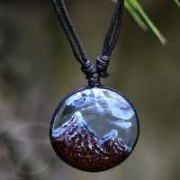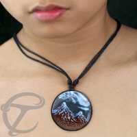 This wooden epoxy pendant is inspired by Everest. A mountain carved from Tamarind wood which we add white paint and finish off with a light blue resin jewelry epoxy with a snow effect creates this chilly wooden resin necklace.