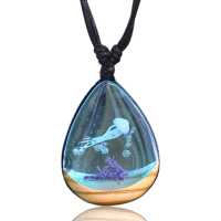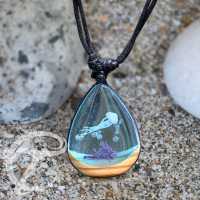Using light coloured Olive wood and a aqua coloured resin with a few bubbles and a Jelly fish gives this Epoxy pendant a very realistic ocean look. A very nice looking resin necklace that fits right in with the rest of our Epoxy jewelry wholesale collection.
