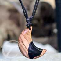 A hand carved moon olive wood pendant that we cut and combine with black resin to make a stunning Epoxy/wood pendant. Check out the matching epoxy earrings in our Resin jewelry wholesale collection.