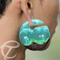 This Misty mushroom Epoxy wood piercing ear-weight is made using hand carved Tamarind wood which set the mushrooms and the sponge grass to finish of this mysterious organic body jewelry. Available as wholesale body piercing at our online body jewelry store.