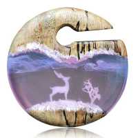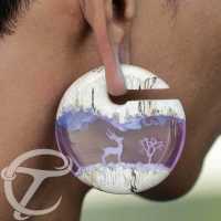 A hand crafted wooden ear-weight combined with blue and violet epoxy jewelry resin with an added snow effect makes for a perfect back-drop for this reindeer epoxy body piercing jewelry.
