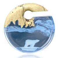 This epoxy ear-weight features a little polar bear cub adrift an ice sheet. Made from a hand carved wood piercing and epoxy jewelry resin with carefully blended blue pigments and an added snow effect to create this stunning epoxy piercing jewelry.