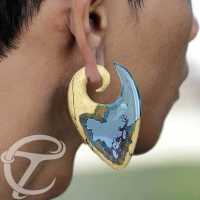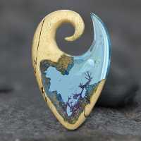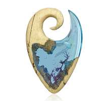 Combining the smooth texture of a carver Olive wood piercing expander and a light blue epoxy we have managed to make this Epoxy ear weight to look like an aquarium. The silicone jelly fish floating above the coral with little bubbles surrounding it makes this a quite unique piece of epoxy body jewelry.