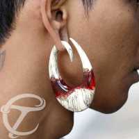 We love mixing this antique looking tamarind wood with our blood red epoxy jewelry resin as the contrast makes for a stunning piece of epoxy body jewelry. In our wholesale resin jewelry collection you will find a wide assortment of wooden epoxy ear-weights to choose from.