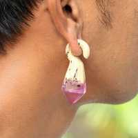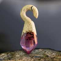 A unique crystal shaped epoxy wood ear-weight were our talented wood jewelry carvers prepared the wood piercing base for our epoxy jewelry artisans to complete this resin piercing jewelry.
