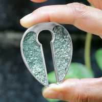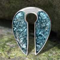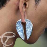 This epoxy earweight is a true combination of white brass body piercing and resin jewelry. We use melted white brass jewelry sheets that we cut and inlay into the white brass piercing weight and then we fill it with a jewelry resin with a tinge of ice blue colouration.