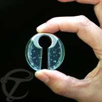 Our Little Bubbles epoxy ear weight is a innovative combination of using one of our popular white brass ear weight designs and adding a light turquoise jewelry resin with lots of little bubbles in all shapes and sizes.