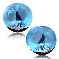 This unique epoxy piercing plug features the silhouette of a lone wolf on top a snowy hill that has been hand-carved from a wooden ear plug. We are extremely proud of our epoxy wood jewelry collection and this resin piercing earplug is no exception.