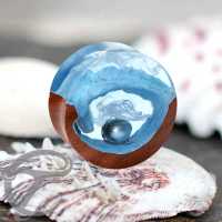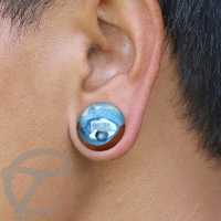 A hand-carved Saba wood plug with a bead in the middle helps to create this stunning wooden epoxy plug. It gives the piece of epoxy body piercing a look of an underwater cave with a pearl in the middle.