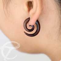 Our artisan give a new touch to our latest collection that adapting tribal theme. Our design idea blends into narra wood. It makes fabulous creation to be a rounded wood spiral shape. A stylish organic piercing reflects the luxurious in unique way. Tribal impression appears through eco material, traditional essence, and natural color. Our design also attach on ethnic pattern with full of aesthetic symbol. This wood fake piercing will blow your cheaters jewelry collection with stunning design and comfort material.