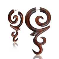 Give this fake piercing an opportunity to show its ultimate features. For the sake of your more stunning body piercing appearance, these brown sono wood plugs are all that you need. Our body piercing ornamentation comes in unique spiral shape, presenting all the best features you may expect from a piece of piercing jewelry. Make sure that this body piercing ornamentation is attached to your everyday look to ensure that you will have such astonishing look, no matter where or when.